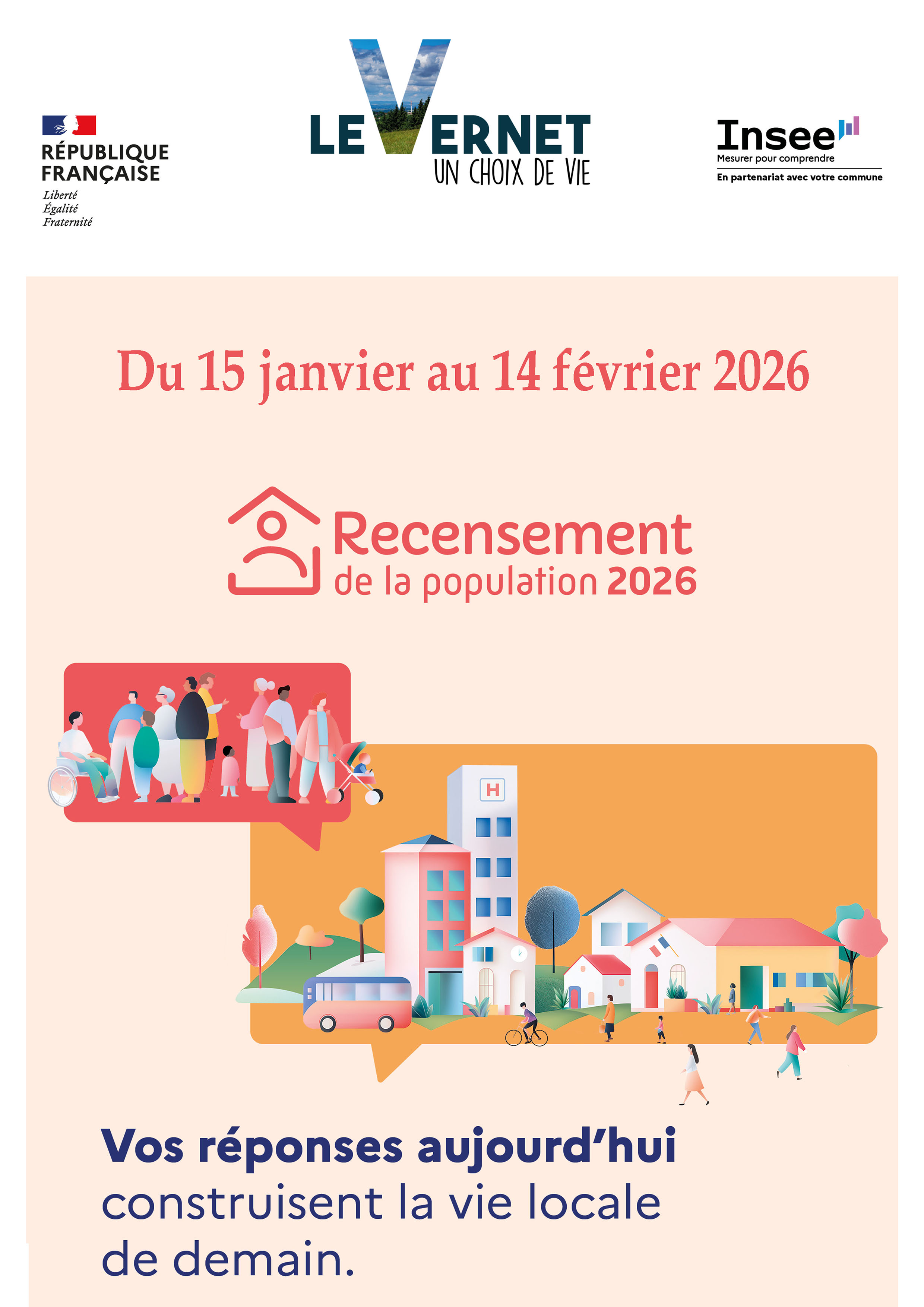 Le recensement se déroulera au Vernet du 15 janvier au 14 février 2026.