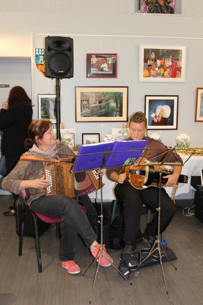 La troupe des Faciles Phénomènes Mobiles a présenté un extrait des « Précieuses Ridicules » de Molière devant un public ravi. Public également conquis, durant ces deux jours, par les animations de nos musiciens Vernétois: Musique Trad avec Mathilde et Françoise, flûte traversière et saxos avec Annie, Sylvain et Serge enfin violon avec Irina.