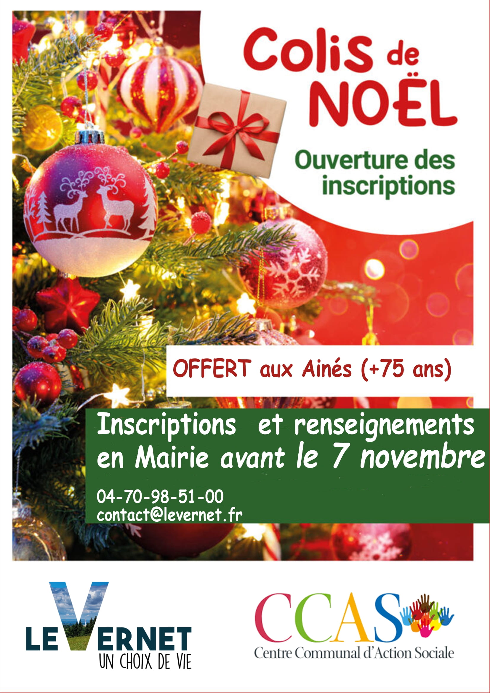 Le CCAS du Vernet propose un colis de Noël aux habitants de plus de 75 ans ne pouvant pas se déplacer au repas des aînés. Le colis sera distribué courant...