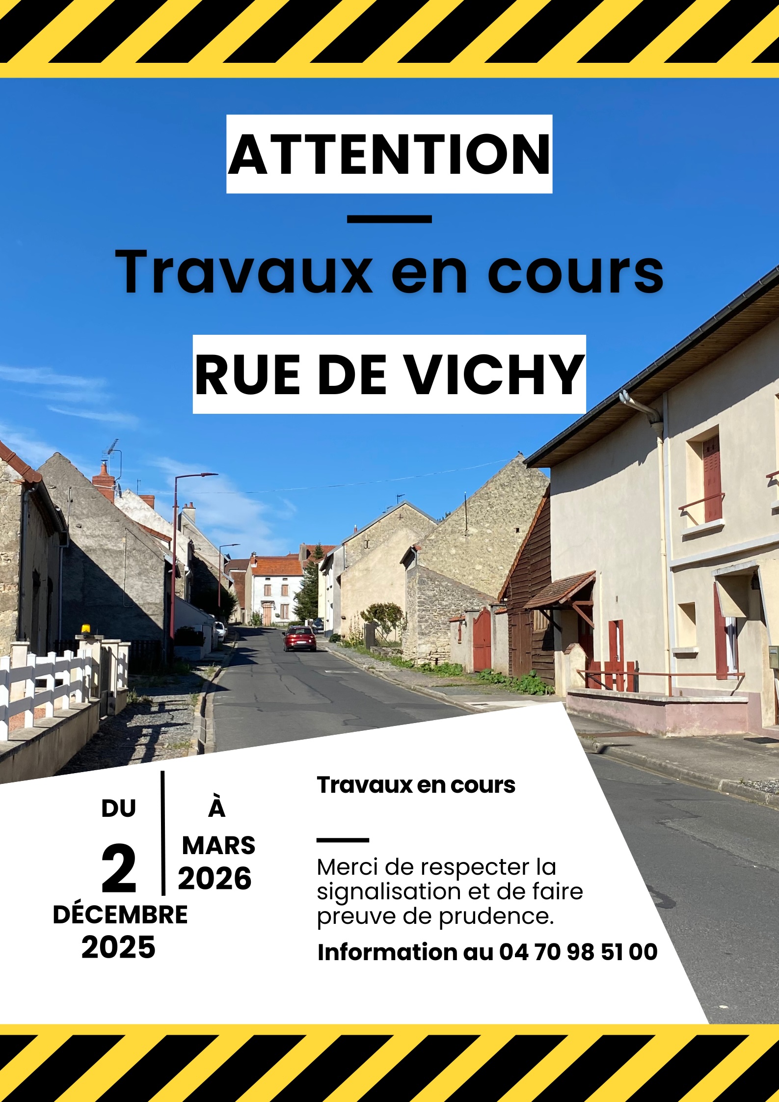 Les travaux d’aménagement de la rue de Vichy ont débuté ce mardi 2 décembre. La durée approximative des travaux est de 4 mois. Cet aménagement...